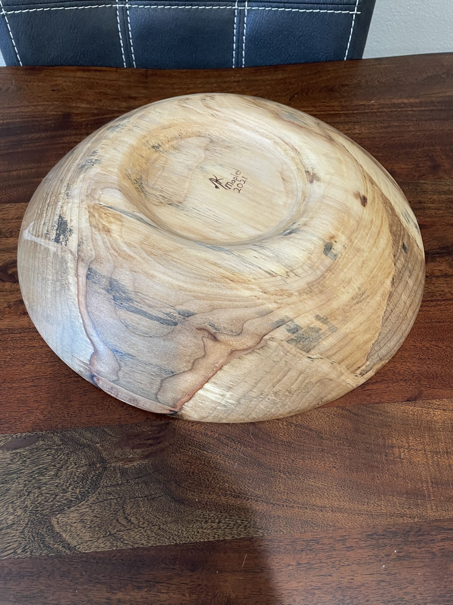 This Chestnut Sea has been turned to 3/8″ which gives it a light, soft touch. The bowl is simply done to display the beauty of the wood, and the contrast of light and dark. Chestnut is a joy to work with because of the surprising drama in the wood itself. Chestnut Sea –450CS